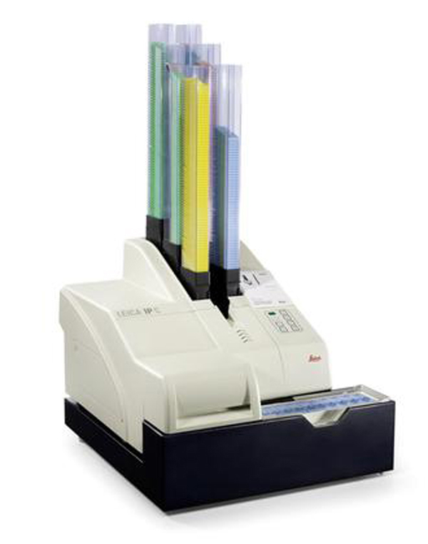 Leica IP C – предназначен для маркировки различных кассет для гистологической проводки. Печать возможна под двумя разными углами наклона. Быстрая и надежная маркировка гистологических кассет (до 15 кассет в минуту), прямое нанесение информации на каждую кассету чернилами, устойчивыми к ксилолу и к другим гистологическим реактивам. Загрузка до 480 кассет одновременно. Станция выгрузки с возможностью отсортировать до 100 промаркированных кассет. Подключение к управляющему компьютеру для удобства передачи информации.